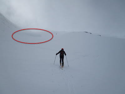 A collets Verds l’idea era baixar cap a la Cabana de l’Alemany, però trobem la neu molt molt dura, no ens ve de gust posar grampons i optem per continua amb esquís per la carena que ens porta de Collets Verts fins a Portella de Mentet.